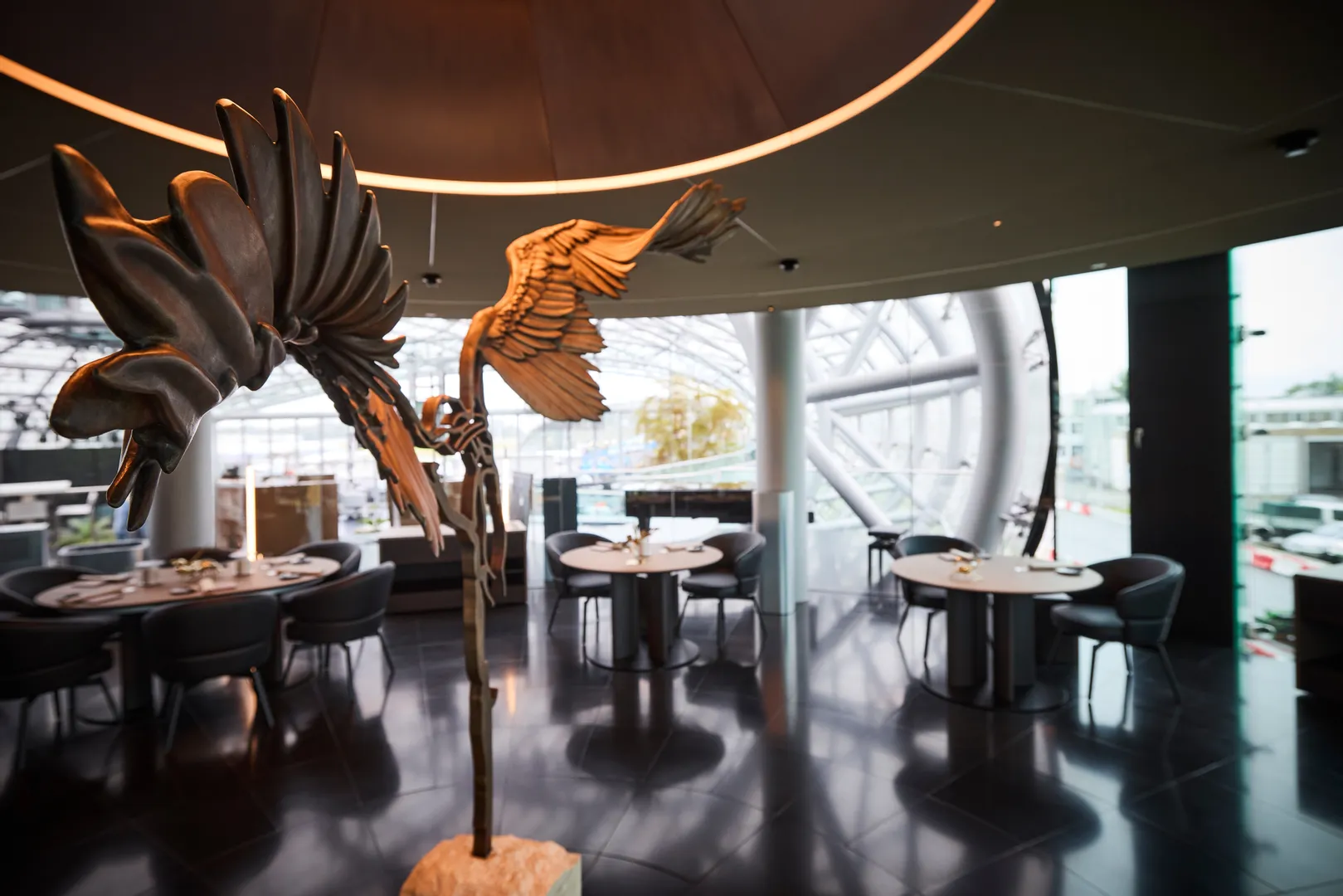 • Restaurant Ikarus Innenbereich mit Ikarus Skulptur und Gemälde