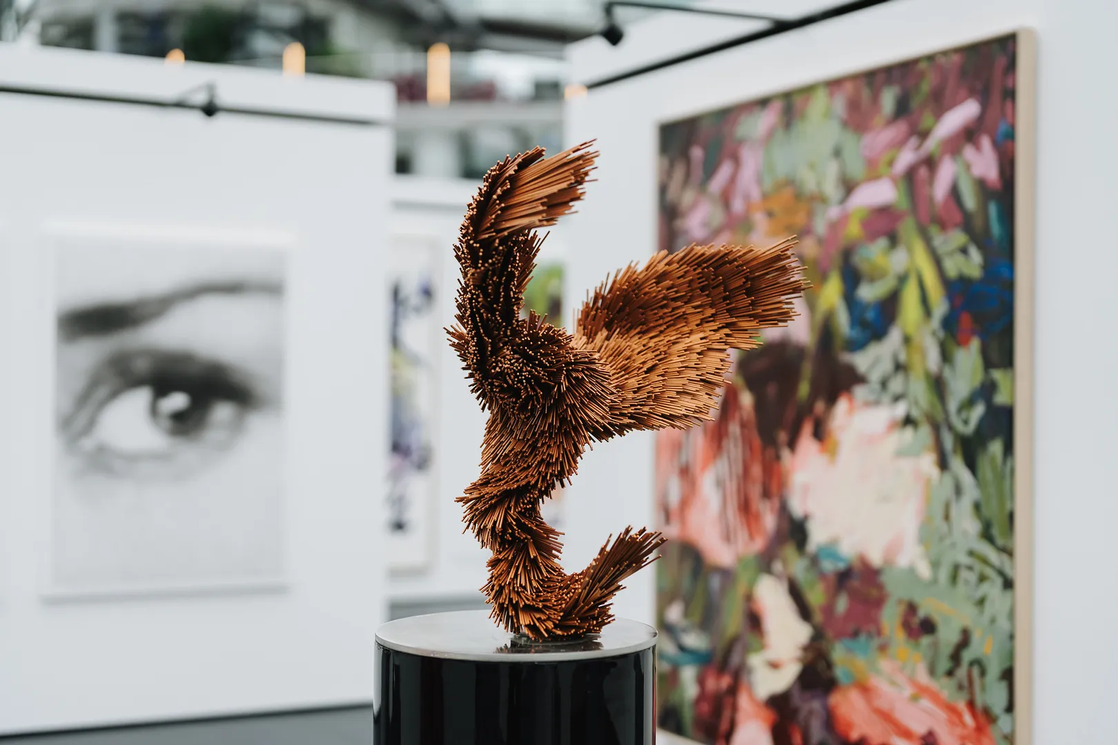 This is evident in the paintings of Duncan Wylie, a Zimbabwean artist whose gestural brushwork and layered use of color define his work. Many artists combine various techniques, such as Rebecca Bernau, based in Munich. Her paintings compellingly merge figurative motifs with the power of color. She works with opaque and transparent fields, gestural traces, and a mix of printmaking, acrylic, and oil layers to achieve the depth and texture characteristic of her oeuvre.
