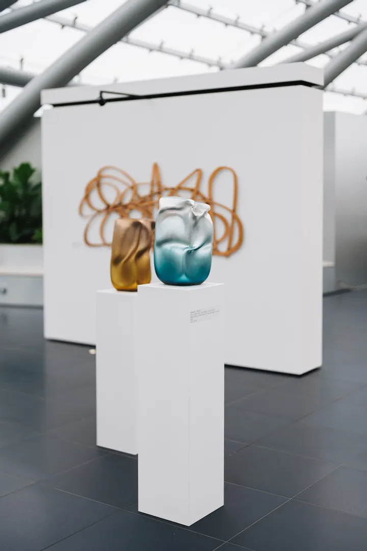 Also noteworthy are the glass objects by Robert Comploj. Born in Innsbruck and working in Vienna, he has long successfully bridged design and art. In his sculptural pieces, color becomes physical—shaped rather than applied. Light penetrates the material, inscribing color impressively into the surrounding space.